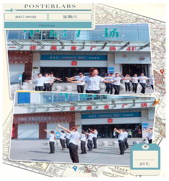 為了增加團(tuán)隊凝聚力及提高員工健康意識,會后所有人員在商場南門集合,全體進(jìn)行了健身操表演。通過健身操表演,全體人員對只有身體健康,才能更好地投入工作的理念有了全新的理解。為此全體員工決定將健身操表演長期進(jìn)行下去,在每天上崗前都會進(jìn)行,以積極向上的健康心態(tài)投入到新的一天的工作當(dāng)中去!