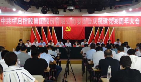 6月29日,在黨的98周年華誕即將來臨之際,中啟控股集團隆重召開紀念建黨98周年大會。膠州市委組織員姜娟、集團董事局主席張啟榮、黨委書記張增昌、黨委副書記孫淑云及黨委委員郭道盛、張桂香、徐奎學、姜煥勝、王法精、馬振聲、張秀玲、孫財林、管吉國等出席會議,會議由黨委副書記孫淑云主持。