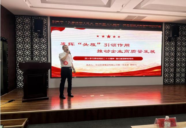 擂臺賽上,中啟膠建集團第一黨支部書記賈桂刊演講主題是《發(fā)揮“頭雁”引領作用 推動企業(yè)高質(zhì)量發(fā)展》,講述黨建工作深入基層、深入項目工地,大力開展“干一個工程,樹一座豐碑”黨建品牌創(chuàng)建活動,在企業(yè)建設中積極發(fā)揮思想引導、政治引領作用,為推動企業(yè)實現(xiàn)高質(zhì)量發(fā)展奠定堅實基礎。