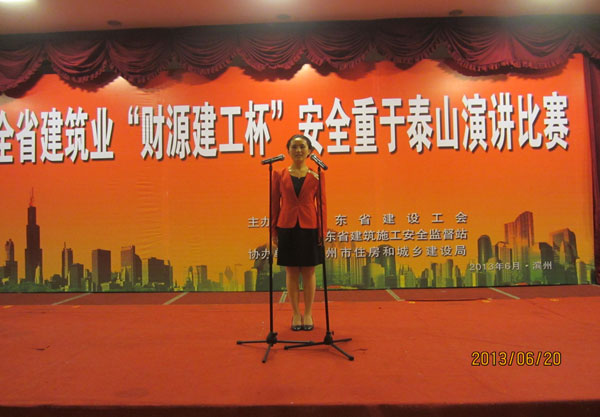 6月19日至6月21日,由山東省建設工會、山東省建筑施工安全監(jiān)督站聯(lián)合組織,在山東省濱州市舉辦了為期三天的全省建筑業(yè)"財源建工杯"安全重于泰山演講比賽。濟南、青島、泰安、日照、濰坊、淄博等十九個地、市代表隊共75名選手參加了比賽。
