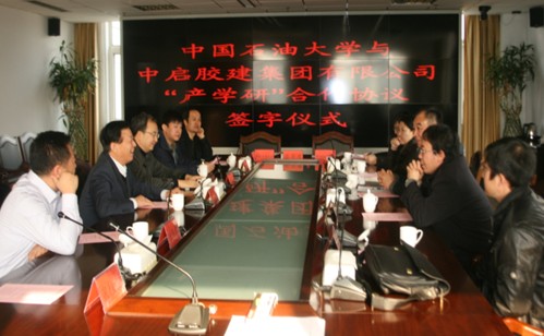 簽字儀式結(jié)束后,出席簽字儀式的雙方領(lǐng)導(dǎo)及集團(tuán)中層以上管理人員在中啟集團(tuán)大門口舉行了中國石油大學(xué)教學(xué)科研基地揭牌儀式。雙方領(lǐng)導(dǎo)分別就合作發(fā)展進(jìn)行了講話。相信,在集團(tuán)公司上下的共同努力下,在中國石油大學(xué)領(lǐng)導(dǎo)和專家的支持下,教學(xué)科研基地一定能夠順利實(shí)現(xiàn)預(yù)定的發(fā)展目標(biāo),能夠在未來的教學(xué)科研和集團(tuán)公司技術(shù)發(fā)展等方面發(fā)揮更為突出的作用,為集團(tuán)公司核心競爭能力的不斷提高和公司的發(fā)展做出更大的貢獻(xiàn)。