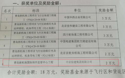 在膠東新機(jī)場指揮部開展的百日攻堅創(chuàng)優(yōu)的工作中,建筑七公司孫兆岐施工的國際快件監(jiān)管中心項目,充分發(fā)揮積極性、主動性和創(chuàng)造性,不斷加大質(zhì)量、安全、環(huán)保等方面的有效管控,在新機(jī)場指揮部組織的檢查考核評比中,獲得第六名好成績和2萬元的獎勵,為公司爭得了榮譽(yù),樹立了公司良好的社會形象。為此給予該項目公司內(nèi)通報表揚(yáng),希望繼續(xù)發(fā)揚(yáng)成績,再接再厲,再創(chuàng)佳績,同時,其他各單位各項目部要學(xué)習(xí)先進(jìn),積極參與各項活動,不斷加強(qiáng)項目各項管理,為公司爭取更多更大的榮譽(yù),展現(xiàn)企業(yè)風(fēng)采。