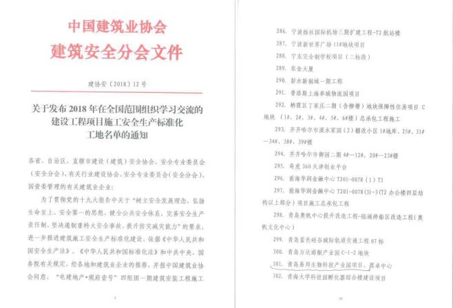 2018年12月5日,由建筑七公司施工的青島易邦生物科技產(chǎn)業(yè)園項目榮獲2018年國家“建設(shè)工程項目施工安全生產(chǎn)標準化工地”。
