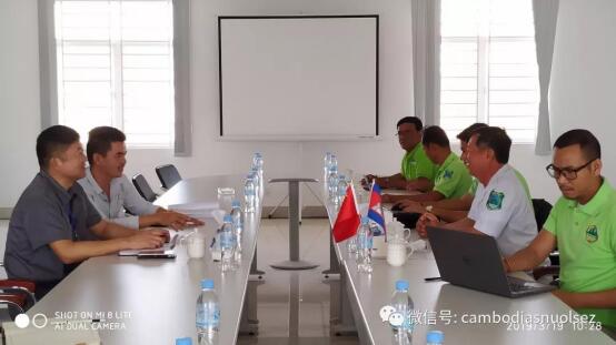 2019年3月19日,柬埔寨國家環(huán)保部和桔井省環(huán)保局官員一行5人到訪桔井省經(jīng)濟(jì)特區(qū),特區(qū)總經(jīng)理賈東飚和工作人員熱情接待了環(huán)保部官員一行。