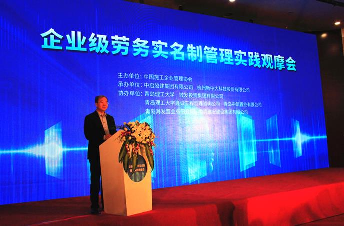 本次會議由中國施工企業(yè)管理協(xié)會主辦,中啟膠建集團有限公司、杭州新中大科技股份有限公司承辦,青島理工大學、成發(fā)投資集團有限公司、青島理工大學建設(shè)工程監(jiān)理咨詢公司、青島中筑置業(yè)有限公司、青島海發(fā)置業(yè)有限公司、中青建安建設(shè)集團有限公司協(xié)辦。中國施工企業(yè)管理協(xié)會副會長兼秘書長尚潤濤,青島市住房和城鄉(xiāng)建設(shè)局副局長劉玉勇,山東省建筑業(yè)協(xié)會會長劉勇,以及各省市主管領(lǐng)導、工程建設(shè)企業(yè)相關(guān)負責人、各關(guān)聯(lián)協(xié)會領(lǐng)導及勞務(wù)專項管理負責人、中國工程建設(shè)企業(yè)互聯(lián)網(wǎng)聯(lián)盟有關(guān)人員等800余人參加了此次會議,會議由山東省建筑業(yè)協(xié)會會長劉勇主持。