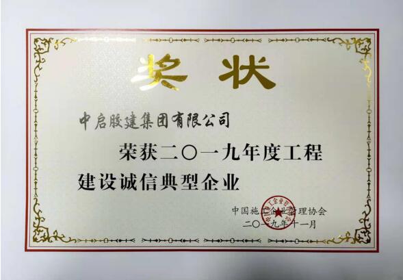 中啟膠建集團(tuán)有限公司喜獲“2019年度工程建設(shè)誠(chéng)信典型企業(yè)”榮譽(yù)稱號(hào)