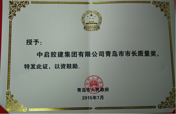青島市市長(zhǎng)質(zhì)量獎(jiǎng)證書(shū)