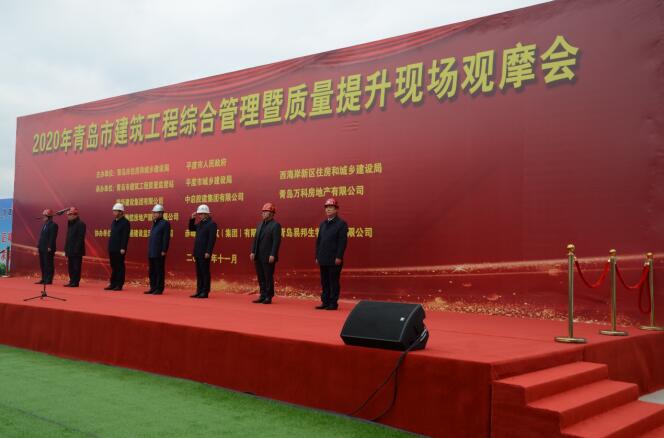 11月20日上午9:00,青島市住房和城鄉(xiāng)建設局組織的2020年青島市建筑工程綜合管理暨質量提升現場觀摩會在中啟膠建集團建筑七公司施工的易邦生物科技產業(yè)園項目現場勝利開幕。青島市住房和城鄉(xiāng)建設局副局長劉玉勇,青島高新區(qū)管委副主任、工委委員蒲洪強,青島市建筑工程質量監(jiān)督站副站長崔浩等出席了此次活動。觀摩會為期兩天,截至11月20日下午5時,青島市及各區(qū)市住房和城鄉(xiāng)建設主管部門、全市建筑工程質量監(jiān)督機構和建設、施工、監(jiān)理企業(yè)項目負責人、質量技術負責人代表等760余人參加了此次觀摩會。