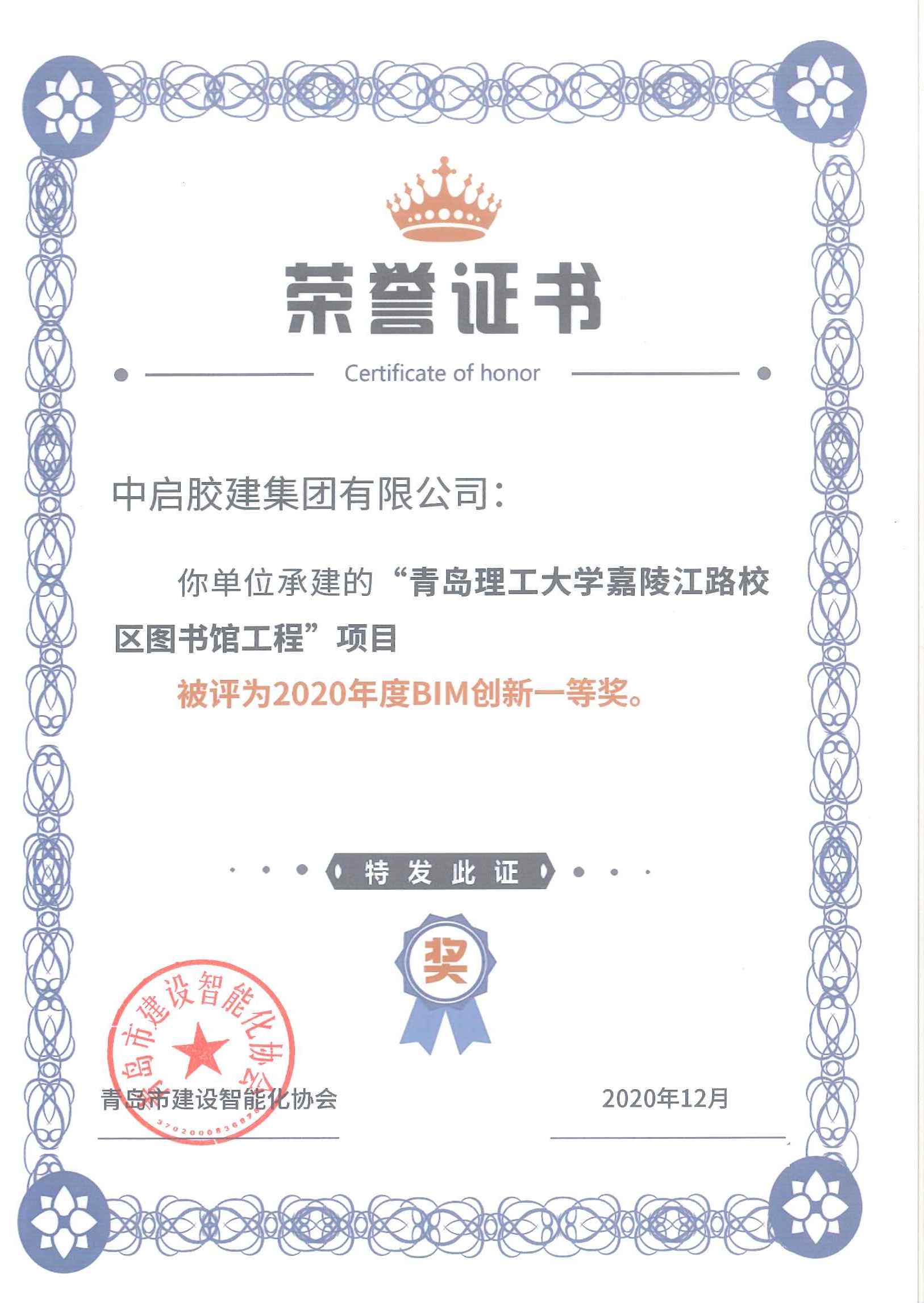 日前,在青島市建設(shè)智能化協(xié)會(huì)組織的2020年度智能化系統(tǒng)優(yōu)秀成果項(xiàng)目及BIM創(chuàng)新活動(dòng)評(píng)選中,中啟膠建集團(tuán)華東公司施工的青島理工大學(xué)嘉陵江路校區(qū)圖書館項(xiàng)目榮獲BIM創(chuàng)新一等獎(jiǎng),易邦生物科技產(chǎn)業(yè)園項(xiàng)目榮獲BIM創(chuàng)新優(yōu)秀獎(jiǎng)。這是我公司首次榮獲該獎(jiǎng)項(xiàng)。