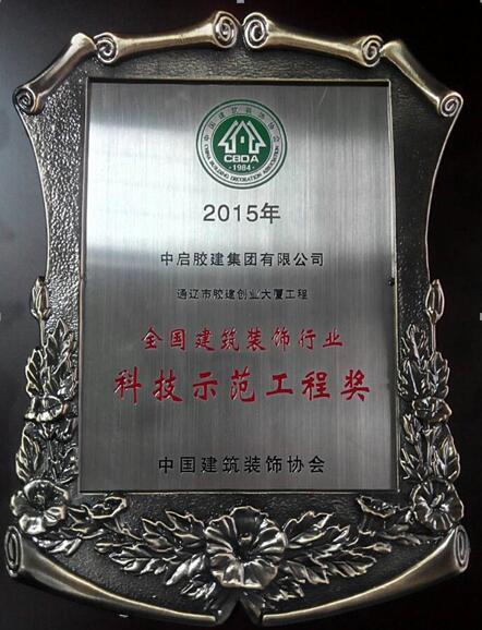 建筑六公司施工的通遼市膠建創(chuàng)業(yè)大廈裝飾工程,榮獲2015年全國建筑裝飾行業(yè)科技示范工程獎,這是我公司首次榮獲此殊榮。