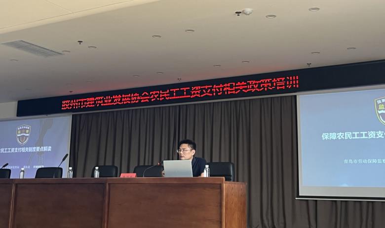 為進(jìn)一步加強(qiáng)建筑工程項(xiàng)目管理,規(guī)范現(xiàn)場(chǎng)勞務(wù)用工管理,深入了解《保障農(nóng)民工工資支付條例》等法律法規(guī),引導(dǎo)企業(yè)加強(qiáng)勞動(dòng)用工管理,規(guī)范工資支付行為,確保工程建設(shè)安全有序推進(jìn)。2023年7月6日上午,膠州市建筑業(yè)發(fā)展協(xié)會(huì)在澄韻中心順利舉行保障農(nóng)民工工資支付方面的相關(guān)政策培訓(xùn)。膠州市住建局副局長(zhǎng)宋世謙和膠州市人社局勞動(dòng)關(guān)系協(xié)調(diào)中心主任李臻出席了本次培訓(xùn)并講話,參加培訓(xùn)的有會(huì)員單位負(fù)責(zé)人及勞務(wù)工作人員共200多人。培訓(xùn)由協(xié)會(huì)秘書(shū)長(zhǎng)劉堯主持。