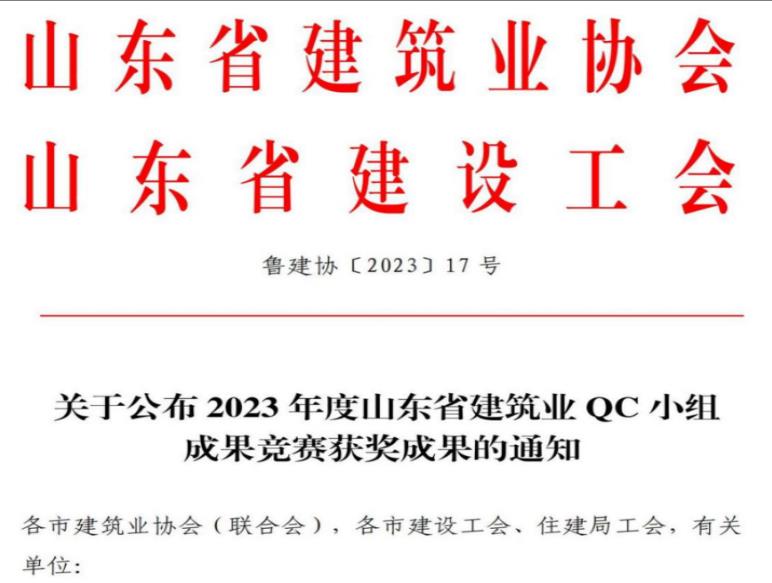 7月7日,山東省建筑業(yè)協(xié)會(huì)和山東省建設(shè)工會(huì)公布了QC獲獎(jiǎng)成果。集團(tuán)9項(xiàng)QC成果獲獎(jiǎng)。
