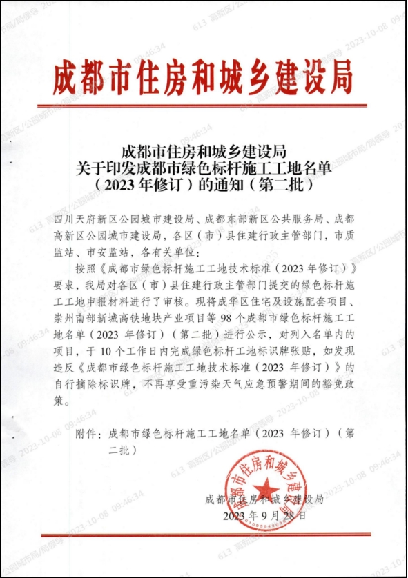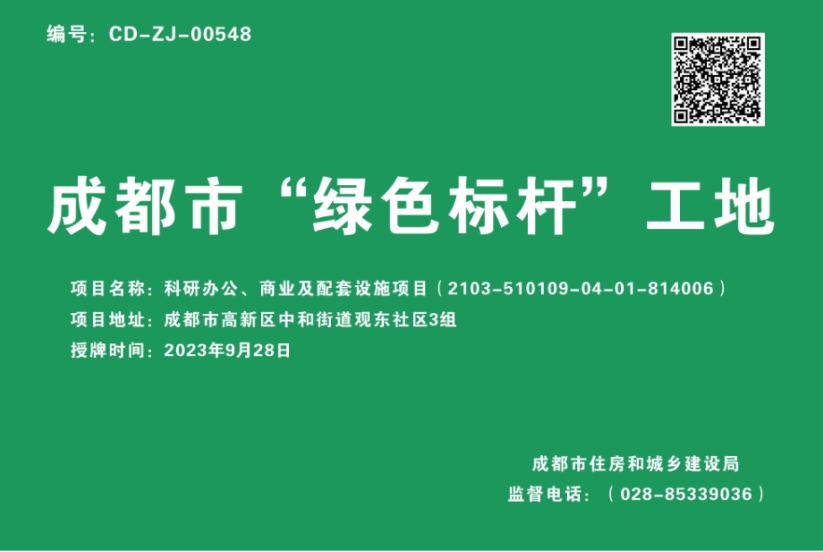 據(jù)悉,科研辦公、商業(yè)及配套設(shè)施項(xiàng)目位于四川省成都市雙流區(qū),其中1號(hào)地塊建筑面積24437.21㎡、2號(hào)地塊建筑面積32310.72㎡。根據(jù)《成都市綠色標(biāo)桿施工工地技術(shù)標(biāo)準(zhǔn)(2023年修訂)》要求,項(xiàng)目部采用智慧化工地系統(tǒng)、揚(yáng)塵噪聲系統(tǒng)、濕法作業(yè)控制、非道路移動(dòng)機(jī)械管理、新能源車輛管理、排污排水管理、食堂管理、腳手架管理、環(huán)保材料使用、封閉作業(yè)管理、項(xiàng)目施工大門出入口管理、圍擋管理、項(xiàng)目各類公示牌管理共計(jì)13項(xiàng)管理手段,使現(xiàn)場(chǎng)達(dá)到了綠色標(biāo)桿工地的標(biāo)準(zhǔn),于2023年9月順利通過(guò)成都市住房和城鄉(xiāng)建設(shè)局現(xiàn)場(chǎng)評(píng)審,最終獲評(píng)此項(xiàng)殊榮。