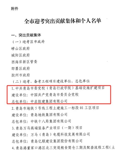 2024年8月,膠州公司的熙園府項(xiàng)目一期工程、七公司的中共青島市委黨校(青島行政學(xué)院)基礎(chǔ)設(shè)施擴(kuò)建項(xiàng)目,代表山東省圓滿完成了國(guó)務(wù)院保障農(nóng)民工工資支付工作實(shí)地考核任務(wù)。