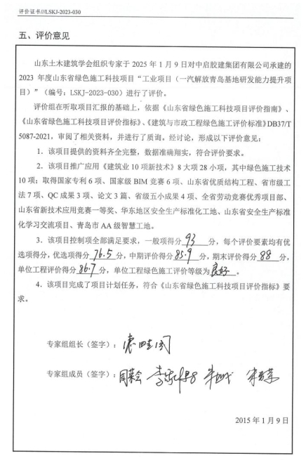山東省綠色施工科技項目評價,是由山東土木建筑學(xué)會組織開展,旨在貫徹落實國家綠色發(fā)展理念,提高工程建設(shè)綠色施工水平,推進全生命周期綠色建造,推動實現(xiàn)碳達峰、碳中和,從而促進工程建設(shè)行業(yè)高質(zhì)量發(fā)展。通過專家評審,該項目單位工程評價取得86.7分的優(yōu)異成績,單位工程綠色施工評價等級為良好。