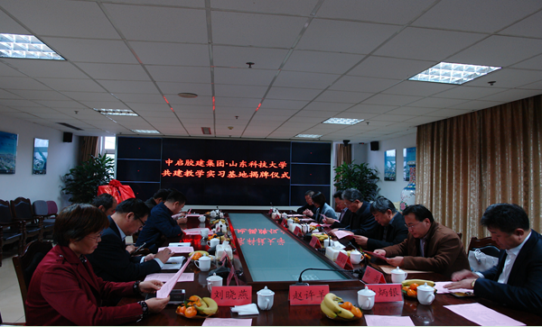 12月20日,中啟膠建集團與山東科技大學(xué)共建教學(xué)實習(xí)基地揭牌儀式在公司三樓會議室舉行。中啟膠建集團總經(jīng)理徐奎學(xué)、總工程師黑增武、總會計師彭武煥、副總經(jīng)理賈桂亮,山東科技大學(xué)黨委副書記李道剛,經(jīng)管學(xué)院黨委書記楊佑靈、院長侯貴生以及MBA教育中心副主任張學(xué)睦和部分山東科技大學(xué)優(yōu)秀校友參加了揭牌儀式。
