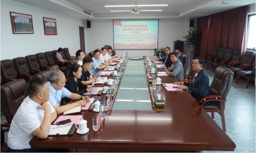在西哈努克省副省長索非一行參觀了集團(tuán)文化展廳、觀看了集團(tuán)宣傳片后,雙方舉行了座談。座談會(huì)上,集團(tuán)董事局主席張啟榮代表集團(tuán)對(duì)索非副省長一行的到來表示歡迎和感謝,隨后向客人介紹了集團(tuán)在柬埔寨的投資合作項(xiàng)目情況。