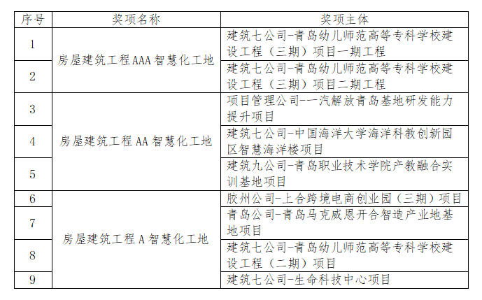 12月24日,青島市建筑業(yè)協(xié)會公布了青島市智慧化工地名單,中啟膠建集團憑借在智慧化施工領(lǐng)域的創(chuàng)新實踐與突出成效,連續(xù)斬獲多項榮譽,包括“房屋建筑工程AAA智慧化工地”、“房屋建筑工程AA智慧化工地”、“房屋建筑工程A智慧化工地”稱號。這一系列榮譽的獲得不僅彰顯了中啟膠建集團在建筑施工智慧化轉(zhuǎn)型中的領(lǐng)先地位,也為青島建筑業(yè)高質(zhì)量發(fā)展提供了創(chuàng)新樣板。